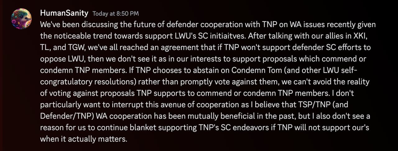 And I think it’s ironic you mention grim triggers, Elu, considering I think we covered that in my game theory seminar the week HS issued the threat.