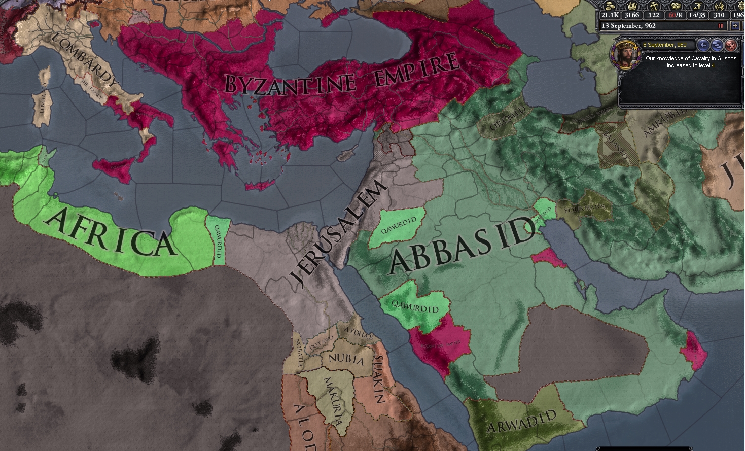 Curently in another Heruli -> Denmark game, but missed out on capturing Rome (though got much of Iberia, a bit of Balkan and the area around Carthage). Roman Empire still exists in the Eastern Caucasus.