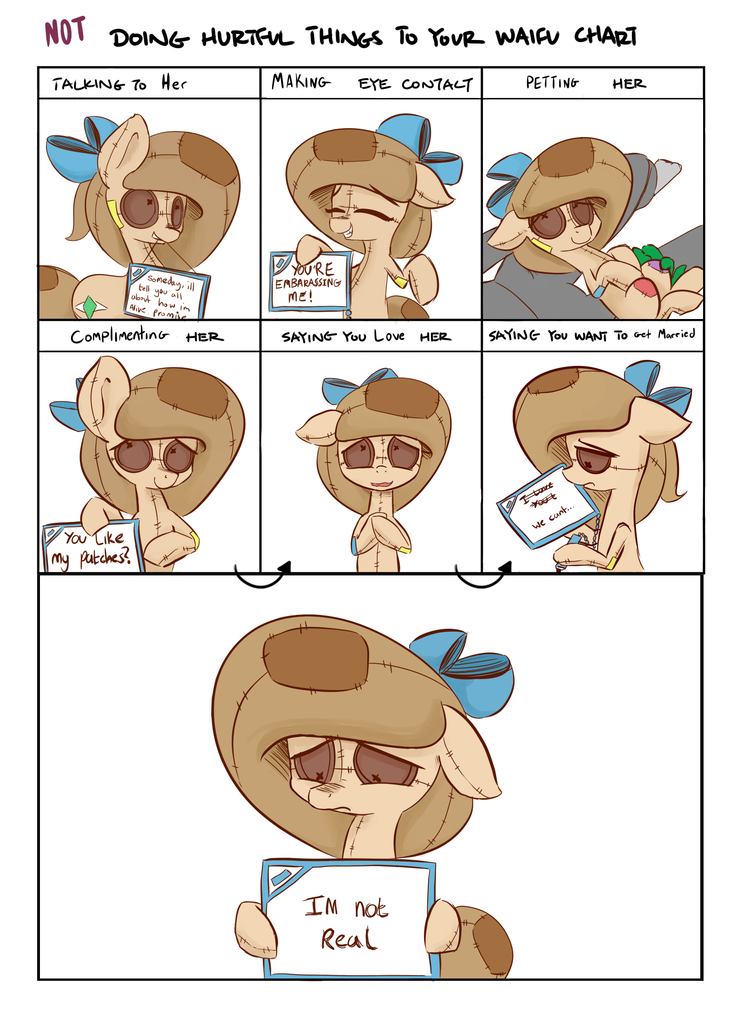 That was what I was thinking of when I saw the final line... but when I looked it up, I learned the pony in said image is "Marker Pony", an OC pony made to represent the My Little Pony General threads on 4chan's /co /. So the question can also arise: is she not real because she is a cartoon horse, or is she not real because she is a non-canon cartoon horse?