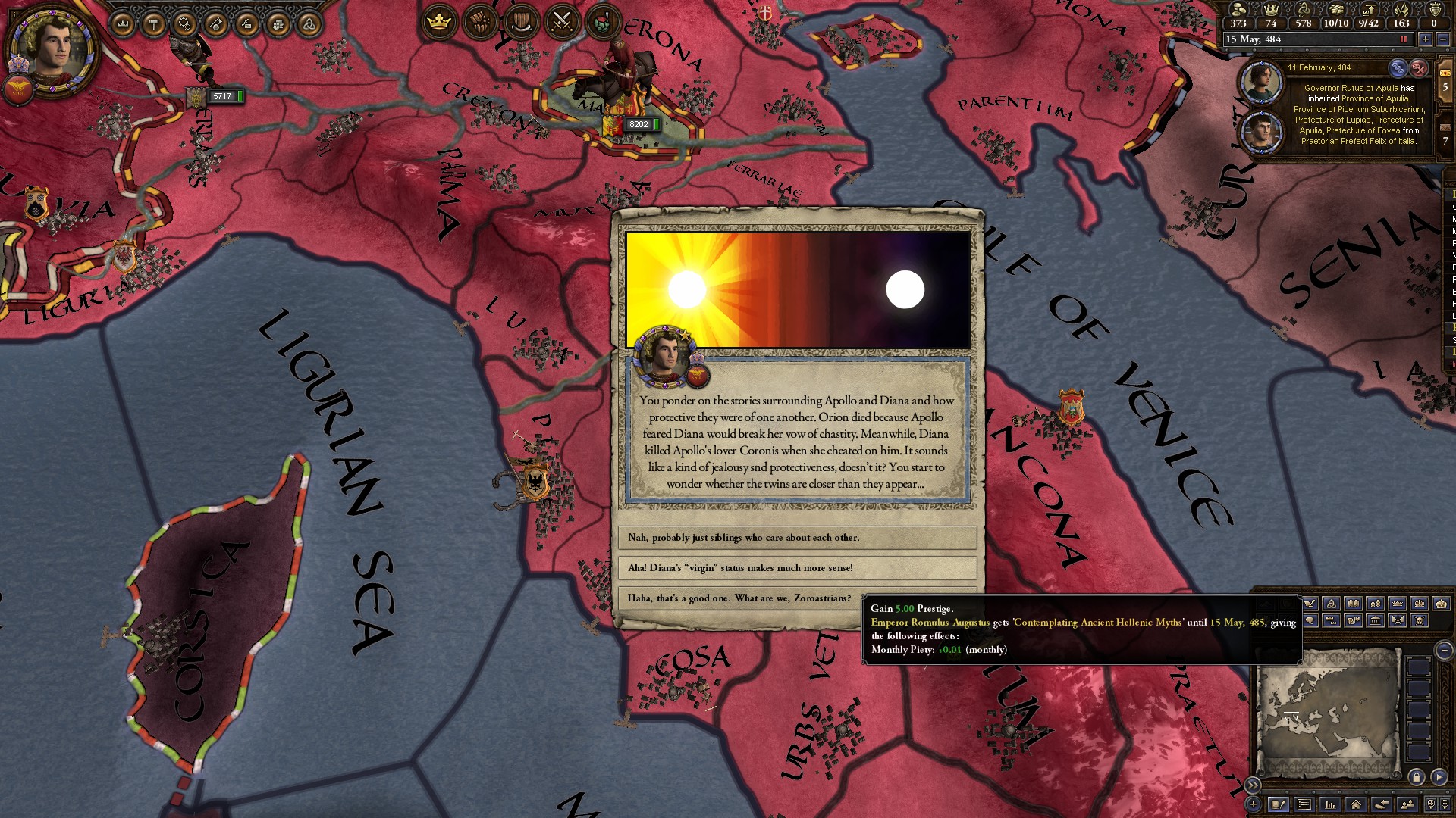 Paketo wrote:Went back to WTWSMS and played as little Augustus converting back to Hellenism. The events for comptemplating the ancient stories are interesting I mean, what are we, Zoroastrians?