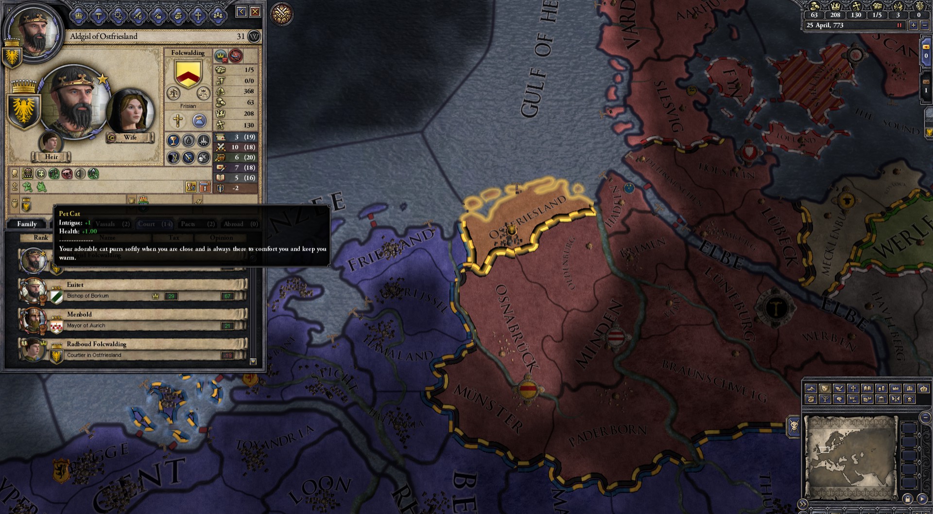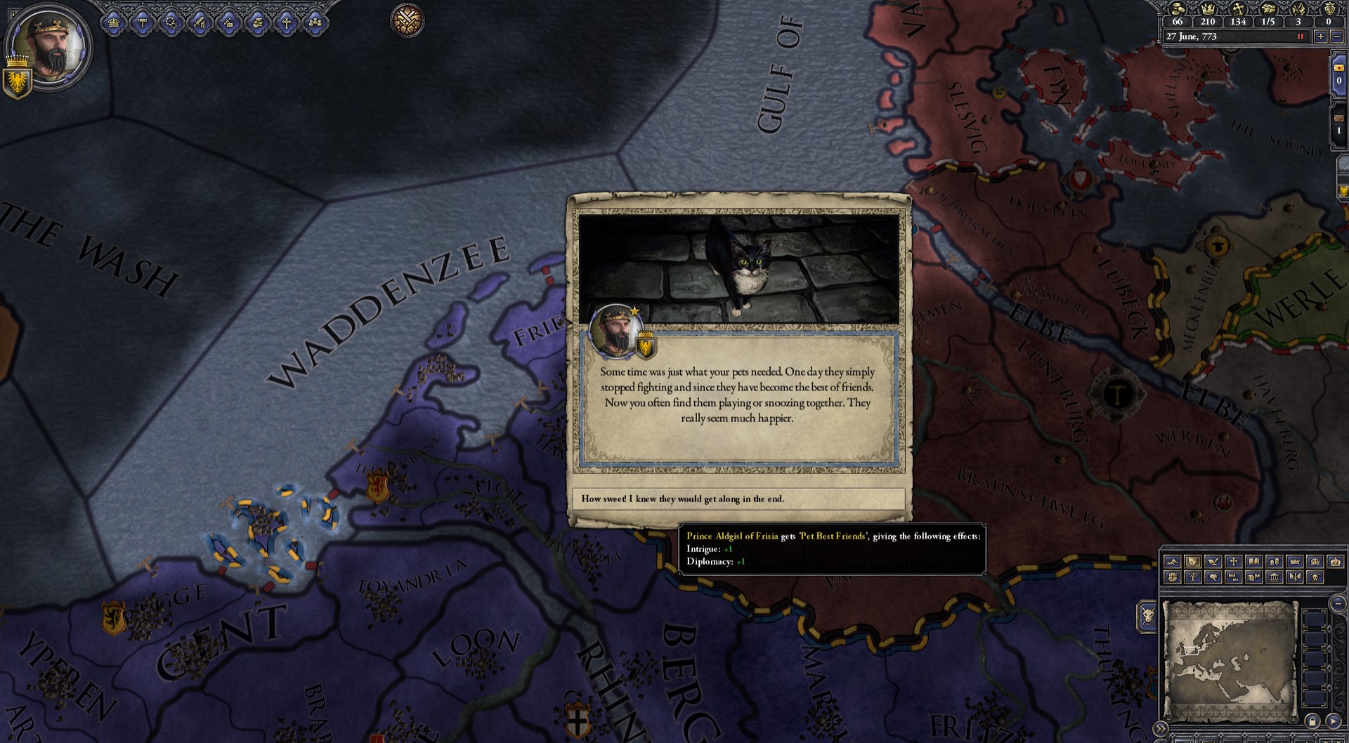Well, I decided to go through my usual route of Viking invading my way to victory. I needed 2 conditions, 769 and feudalism. The county of Ostfriesland provided that, plus the necessary Germanic. Converting my heir was easy enough, now all I've gotta do is wait for invasion o-clock--