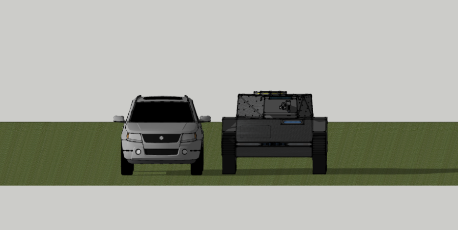 The suspension is unique, in being modular, bolt on units, making repairs, and maintenance quite easy. It also features an active front idler, a system designed to keep the track properly tensioned at all times. Especially needed when traveling at high speed, preventing the track from throwing itself due to excess slack that other tracked vehicles are prone to, as their track must be kept slack to accommodate any suspension droop.