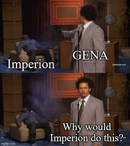 Hold off me? What does that even mean?Common Territories wrote:Yes. It is that simple. GENA would not have been targeted if it had used the established deconfliction line to alert it wasn't GENA but only Phenyzia acting rouge; only Phenyzia would have had nukes directly aimed at it then. Playing zero sum games gets zero sum results. At the end of the day, or even I'd say much sooner, your country's safety means absolutely nothing to us when compared to our own interests. This is what happens when nations agree to form military alliances too. They are tied to them and whatever actions they commit reflects on their allies. Not hearing a word back even after the dust settled didn't help GENA's position with us either. I don't know what you should have done with them either. People have made suggestions, but at the very least actually punishing them would have done resulted in Imperion and GENA still having relations.